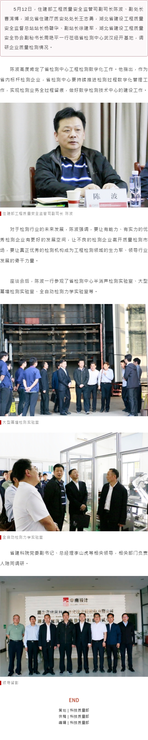 住建部质安司副司长陈波一行莅临省检测中心调研企业质量检测工作